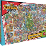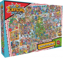 Lépjen be az ünnepi szórakozás világába a GIBSONS Jokesaws: Crackers for Christmas kirakóval. Az ezer precízen vágott darab részletgazdag illusztrációt alkot rengeteg karácsonyi tréfával, ami egyaránt örömet szerez gyűjtőknek és alkalmi kirakóknak. A kényelmes, 68 × 49 cm-es kész méretnek köszönhetően a legtöbb asztalra és alátétre jól illik.
