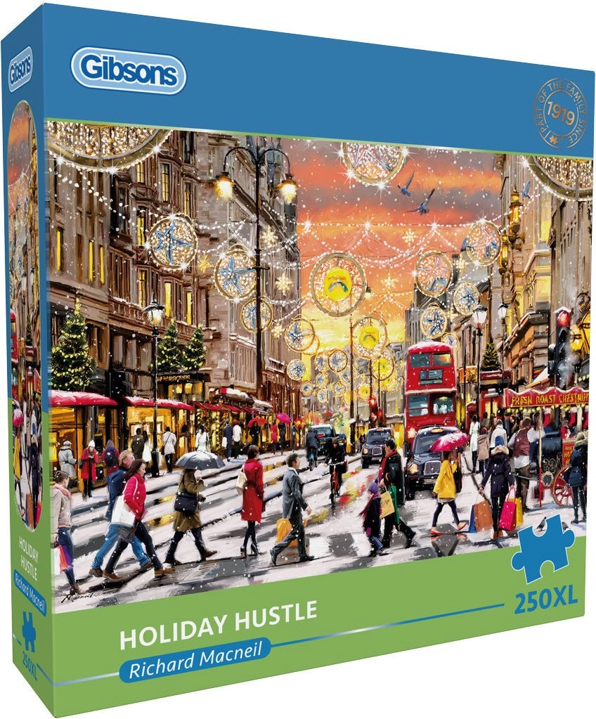 Merüljön el a karácsony hangulatában az „Ünnepi nyüzsgés” vidám motívumával. A GIBSONS kirakó híres precíz kivitelezéséről, élénk színeiről és a kényelmesen megfogható XL darabokról, amelyek megkönnyítik a kirakást gyerekeknek, időseknek és mindenkinek, aki a nagyobb elemeket részesíti előnyben.