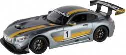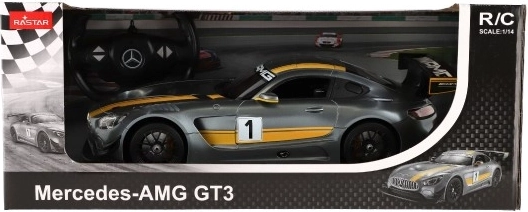 A MERCEDES-AMG GT3 stílusos távirányítós modellje 1:14 méretarányban valósághű vezetési élményt nyújt 35 cm-es hosszúsággal, megbízható 2,4 GHz-es rendszerrel. A kormány alakú vezérlő, akár 20 m hatótáv és akár 30 perc üzemidő remek választássá teszik 6 éves kortól a gyerekeknek és a lelkes gyűjtőknek is.