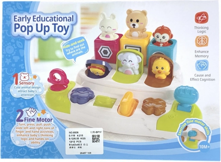 A játék minőségi, tartós műanyagból készült éles lezárások nélkül, így a legkisebbek számára is biztonságos. A vidám állatkák és váratlan „felugrásuk” garantáltan mosolyt csalnak az arcokra, és hosszú időre lefoglalják a gyerekeket otthon és útközben is.