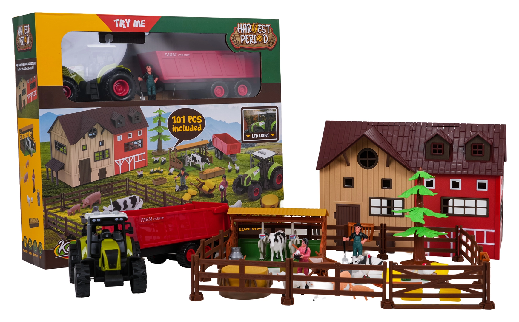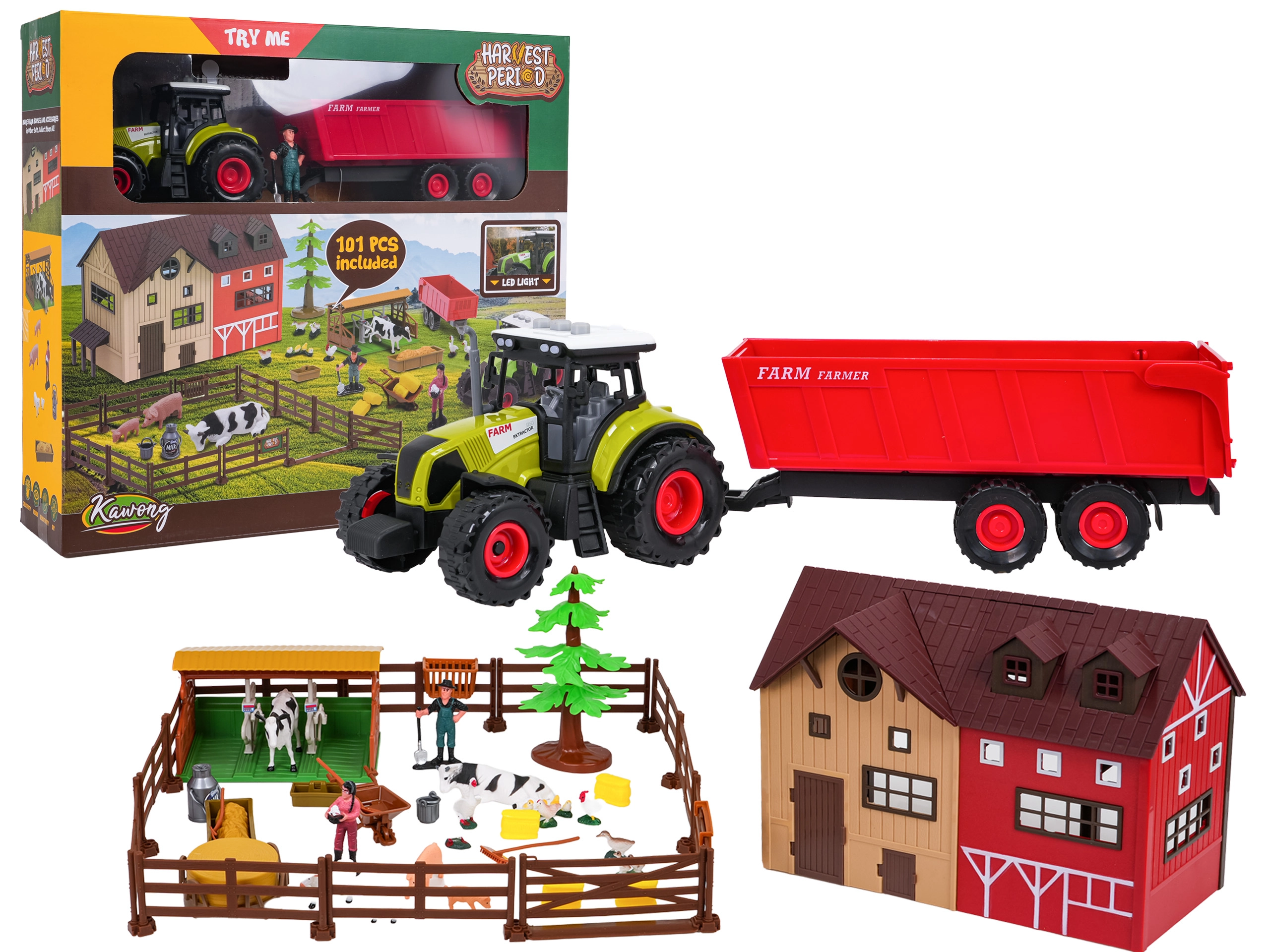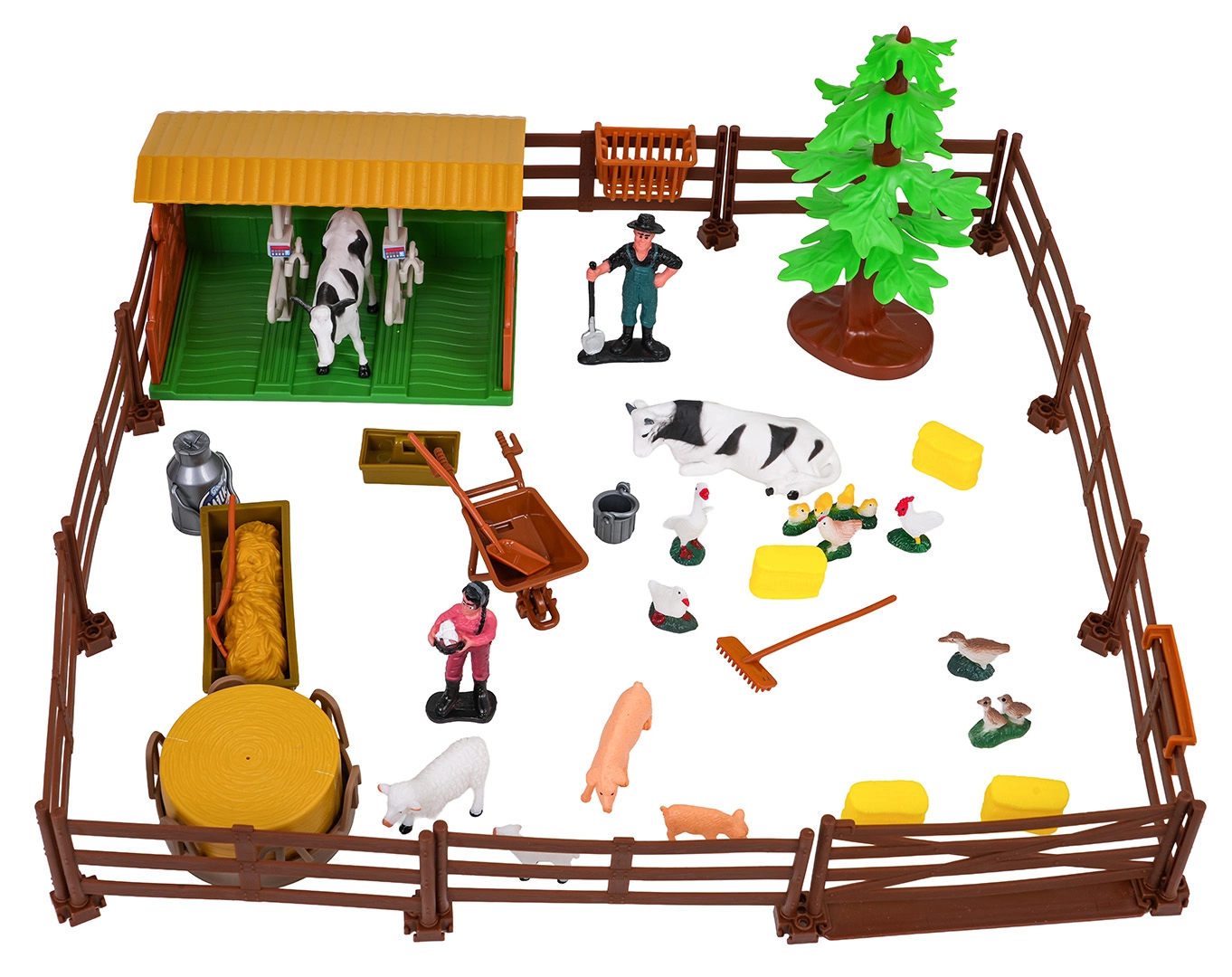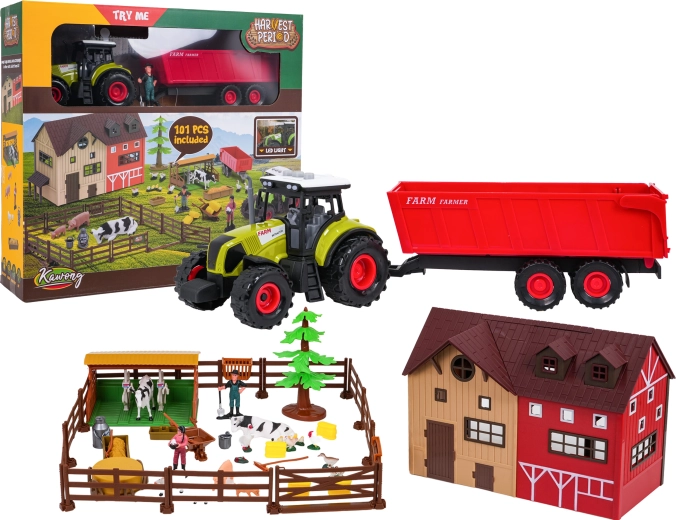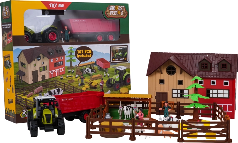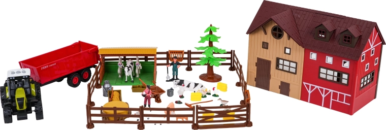 - Teljes farm egy dobozban: pajta, karámok, állatok, gazdafigurák és bőséges tartozékok.
