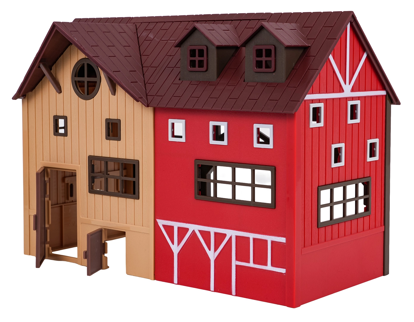Ez a gazdagon felszerelt, élénk színű, minőségi műanyagból készült készlet hiteles vidéki élményt nyújt a gyerekeknek. A nyitható pajtaajtók, a moduláris karámok és a sok valósághű kiegészítő (szalmakötegek, szerszámok, etetők) támogatják a szerepjátékot és a farmélet megismerését.
