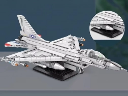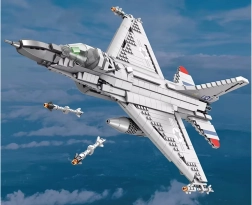 Építsd meg az ikonikus F-16 Fighting Falcon vadászgépet 1337 elemből, és állítsd ki az elegáns állványon. A részletgazdag, minőségi ABS műanyagból készült modell mozgatható elemeket kínál, többek között nyitható futóművet és cserélhető fegyverzetet a látványos konfigurációkhoz. Remek választás gyűjtőknek és kreatív játékhoz is.