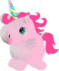A rózsaszín unikornis 3D kartonmodellként tökéletes választás a kis alkotóknak. A darabokat csak ki kell pattintani a lapokból, és a csomagoláson található útmutató szerint összeállítani. A kész figura játékként és bájos gyerekszobai dekorációként is örömet okoz.