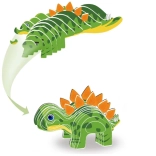 Kreatív 3D karton kirakó, amely a lapos elemeket színes Stegosaurusszá alakítja, élénk narancssárga hátlemezekkel. Az elemeket elég kipattintani és a csomagoláson lévő egyszerű leírás szerint összerakni – olló és ragasztó nélkül.