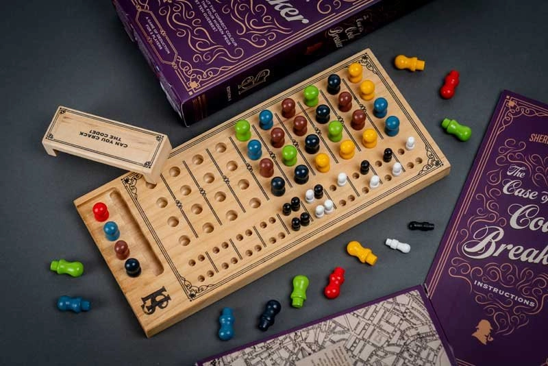 A legendás Mastermind-típusú fejtörő elegáns fa kivitelben okos, egy az egy elleni párbajokat kínál. Az egyik játékos titokban választ egy kombinációt, a másiknak pedig legfeljebb tíz próbálkozásból kell azt felderítenie fekete és fehér értékelő pöckök segítségével. Kombináljon, következtessen, és járjon túl ellenfele eszén, akárcsak SHERLOCK HOLMES a riválisáén.
