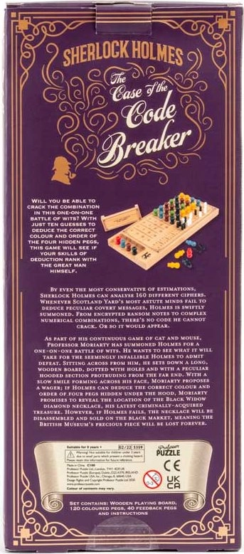 Fedezze fel a SHERLOCK HOLMES világából ihletett, izgalmas logikai kihívást ezzel a fából készült játékkal. A cél, hogy a kapott jelzések alapján kitalálja a négy színes pöcök rejtett mintáját, és legyőzze ellenfelét. A játék fejleszti a logikus gondolkodást, a stratégiát és a koncentrációt, minőségi fából készült, és számtalan variációt kínál az újrajátszhatósághoz.