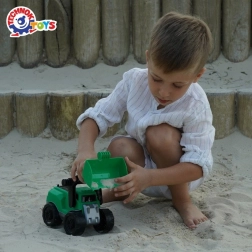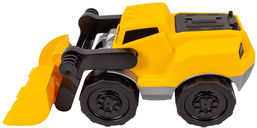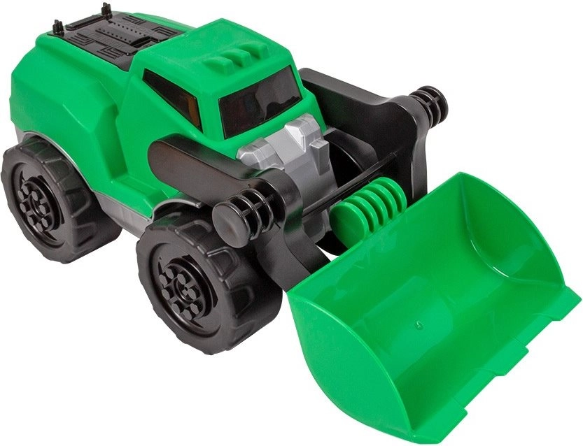 Masszív műanyag homlokrakodó 28 cm hosszban kis építőknek. Szabadonfutásának köszönhetően könnyen irányítható, mozgatható első kanállal rendelkezik a fel- és lerakodáshoz, és ideális homokozóba és otthoni játékra egyaránt. A csomag 1 darabot tartalmaz véletlenszerű színben a raktárkészlet függvényében.