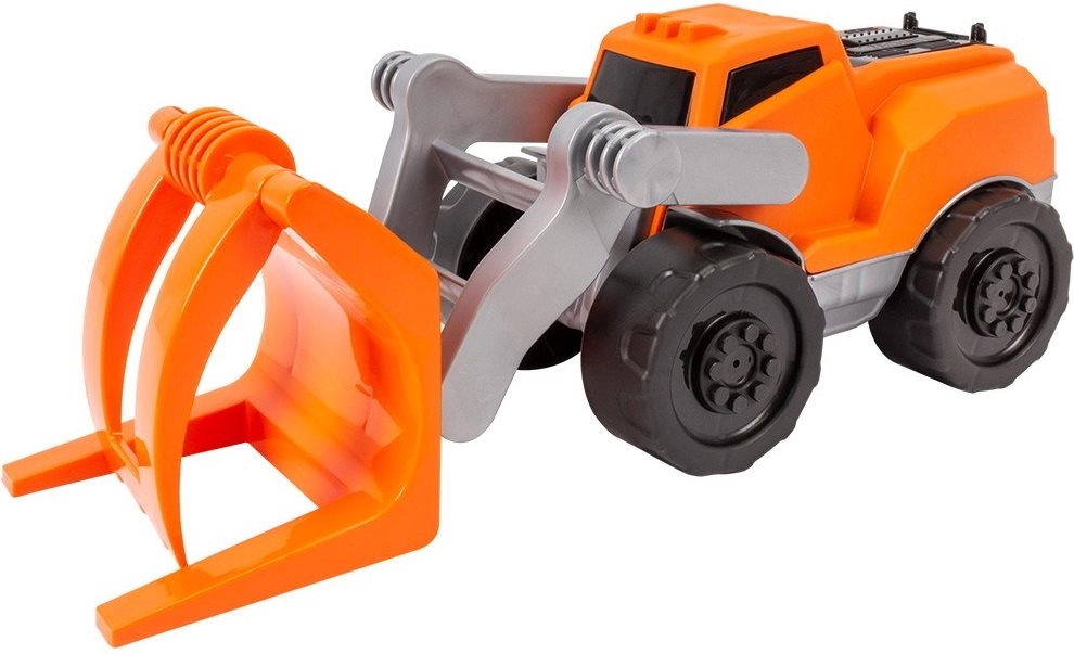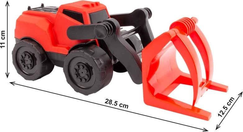 Fedezd fel az építkezés élményét a 28 cm hosszú markolós traktorral. A nagy kerekek, a szabadonfutó meghajtás és az elülső, mozgatható kar markolóval lehetővé teszik, hogy a gyerekek felvegyenek, szállítsanak és kirakjanak apró tárgyakat, mintha valódi építkezésen lennének.