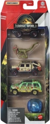 Éld át a filmes kalandokat a Matchbox Jurassic World kollekcióval! Minden készlet 4 darab, 1:64 méretarányú fém kisautót hoz a híres filmsorozat ihletésében, valamint egy kis dinoszaurusz figurát a még nagyobb akcióért. Ideális 3 éves kortól és gyűjtőknek egyaránt. A kivitel és a színek eltérhetnek.