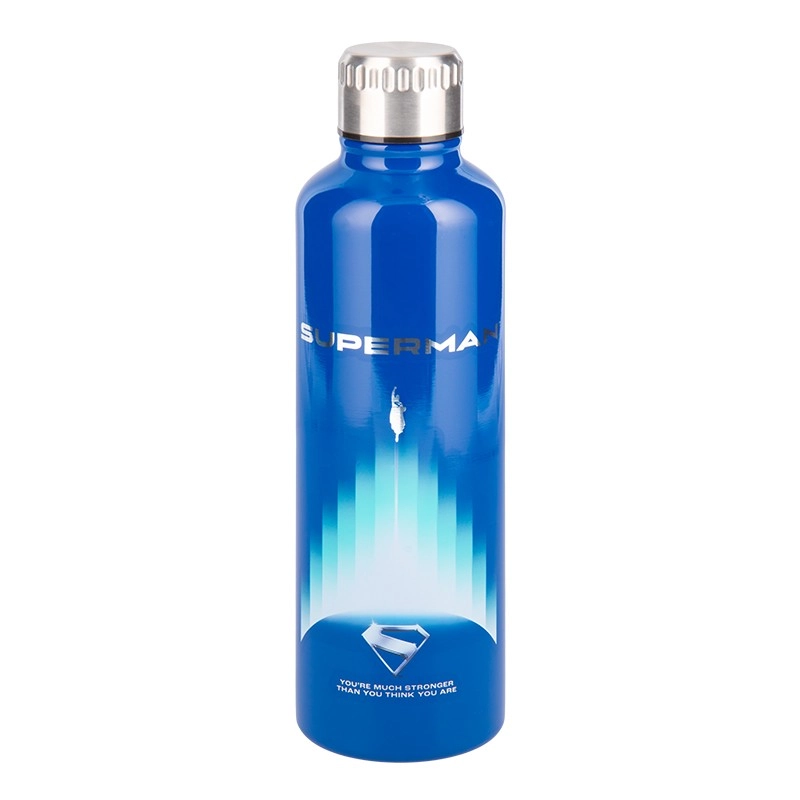Stílusos rozsdamentes acél palack SUPERMAN motívummal, 500 ml űrtartalommal – ideális utazáshoz, iskolába és munkába. A tartós rozsdamentes acél kivitel tovább frissen tartja az italt, és kompakt méretének köszönhetően könnyen elfér a hátizsákban. Nem alkalmas mosogatógépbe.
