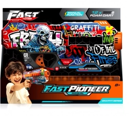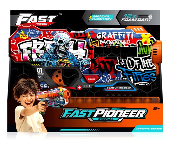 A kézi Fast Pioneer pisztoly megbízható és biztonságos akciószórakozást nyújt gyerekeknek és kezdő rajongóknak. A felhúzó mechanizmusnak köszönhetően nem igényel elemet, így mindig készen áll az akcióra. A hablőszerek kíméletesek a bútorokhoz és biztonságosak barátokkal való játék közben.