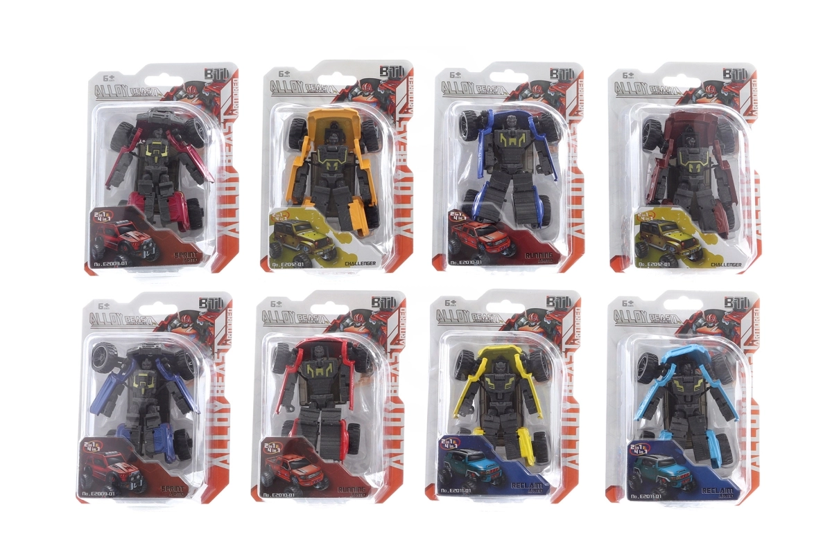 Szórakoztató fém figura, amelyet könnyedén átalakíthatsz robotból autóvá. Az elemek egymással kombinálhatók – kapcsolj össze 2–4 robotot, és alkoss egy nagy szuperrobotot. Kompakt méret az otthoni és útközbeni játékhoz, strapabíró fém kivitel, és ideális ajándék 6 éves kortól.