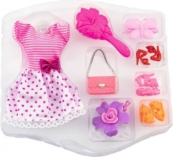 Ez az univerzális babakészlet teljes öltözéket kínál minden alkalomra. A gyerekek kombinálhatják a ruhát, a cipőket és a hajkiegészítőket, így végtelen sok stílust hozhatnak létre. A vegyes kivitel meglepetést és örömöt garantál minden csomagban.