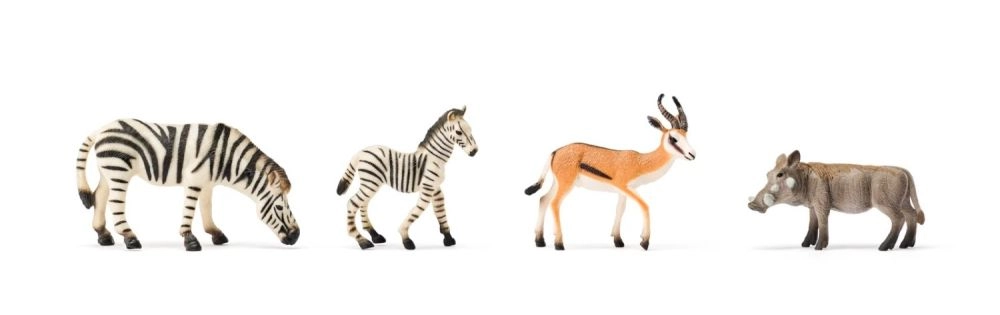 A kölyköktől a felnőtt állatokig – elefántok, zsiráfok, zebrák, antilopok és víziló kombinációja támogatja a kreatív jeleneteket és a hosszan tartó játékot.