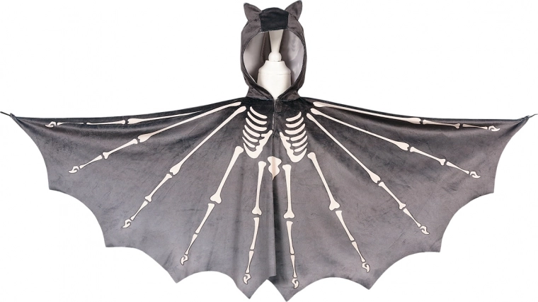 Bájos és egyben titokzatos gyermek denevér jelmez 4–8 éves korig (104–128 cm), amely minden kis kalandort elbűvöl. A kapucnis köpeny denevérfülekkel, látványos csontváz mintával a szárnyakon és a törzsön, valamint a nyaknál tépőzáras záródással rendelkezik az egyszerű fel- és levételért. Ideális Halloweenre, farsangra és tematikus bulikra.