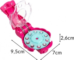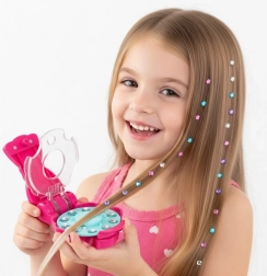 A csomagban 180 akril kristály található rózsaszín, lila, kék és ezüst árnyalatokban, valamint népszerű formákban, mint a szívecskék, csillagok, pöttyök és gyémántok. A biztonságos, éles szélektől mentes kialakítás kíméletes a hajhoz és az anyagokhoz, és megfelel a CE / EN 71 szabványoknak.