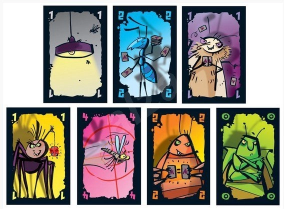 Színes rovarfigurák erős kartonon, amelyek bírják a gyakori keverést és a végtelen játékmeneteket.