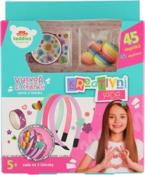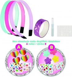 Készítsen eredeti fejpántokat pontosan a saját ízlése szerint. A szett három alap fejpántot és gazdag díszítőválasztékot tartalmaz, amelyekkel egyedi kombinációk születnek – a színes és játékostól a visszafogott és finom stílusig. Az egyszerű folyamatot a kisebbek is könnyen elsajátítják, miközben az alkotás során gyakorolják a türelmet és a finommotorikát.