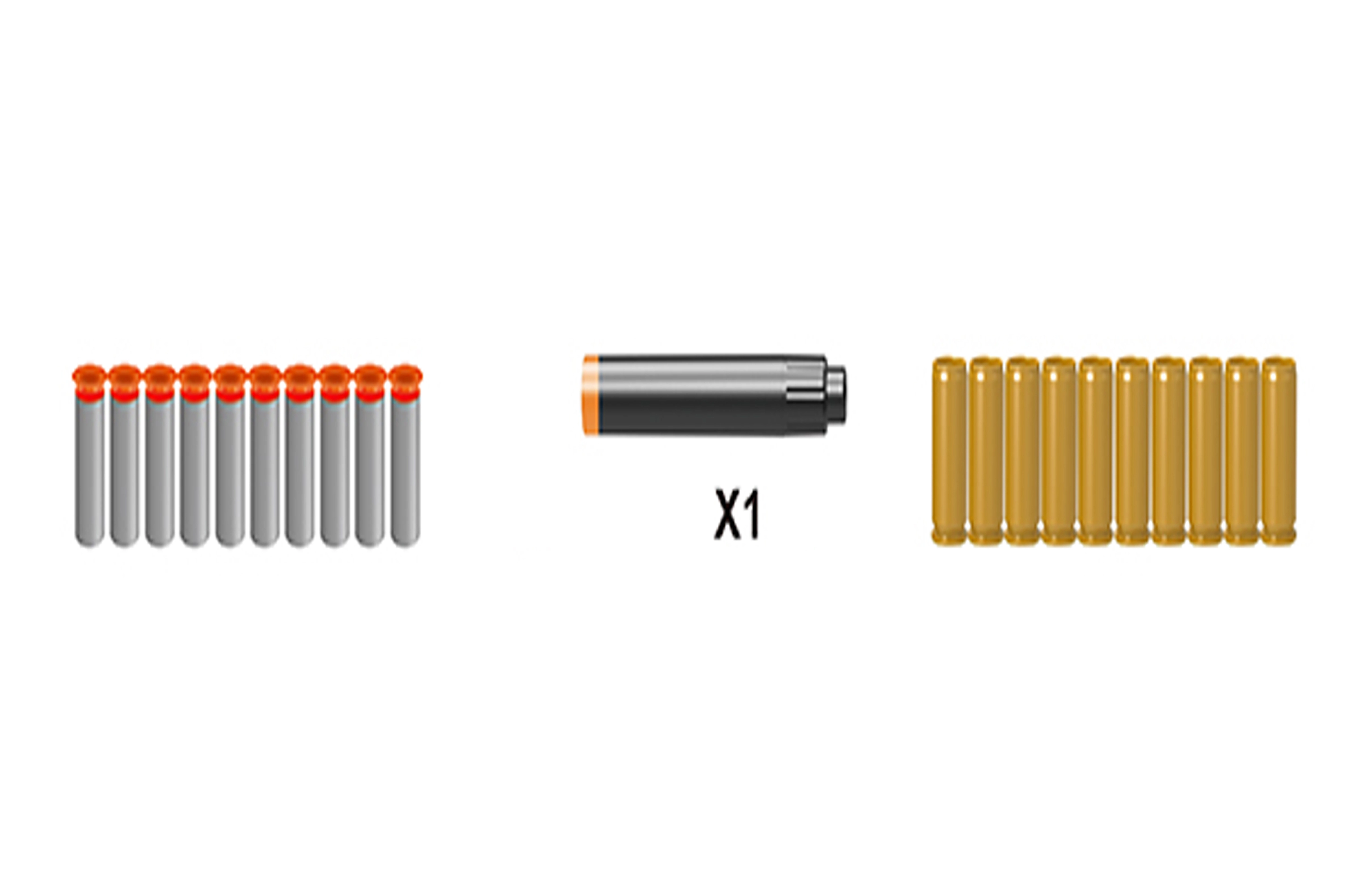 A csomag mindent tartalmaz az azonnali szórakozáshoz: állvány a stabil célzáshoz, tompító és állítható irányzék. A hablövedékek kíméletesek, beltérre és kültérre egyaránt alkalmasak. A patronok autentikus érzetet adnak a játéknak, így a gyerekek biztonságos formában próbálhatják ki a töltést és a lövést.