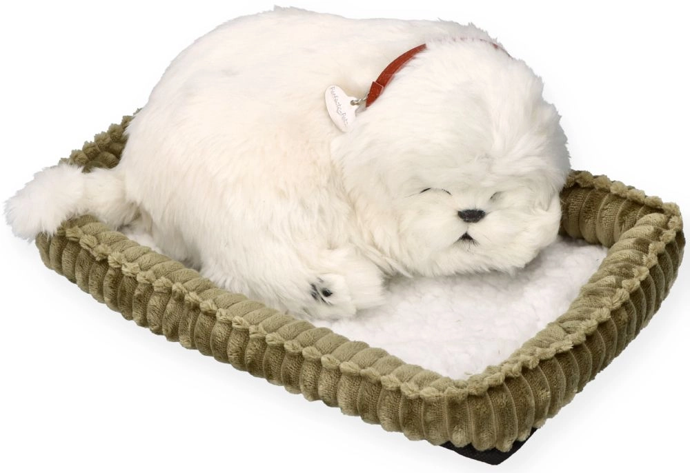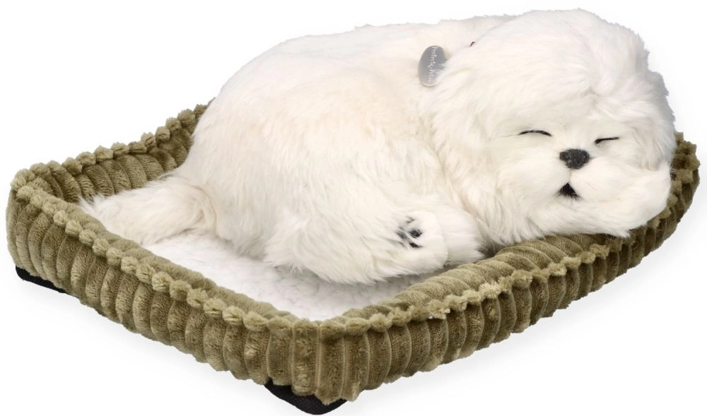 A PERFECT PETZZZ élethű, alvó testhelyzetű máltai kiskutyája megnyugtató társaságot és puha ölelnivalót visz minden otthonba. Selymes plüss bundájának és saját fekhelyének köszönhetően ideális ajándék 3 éves kortól, dekorációnak és alvótársnak is.