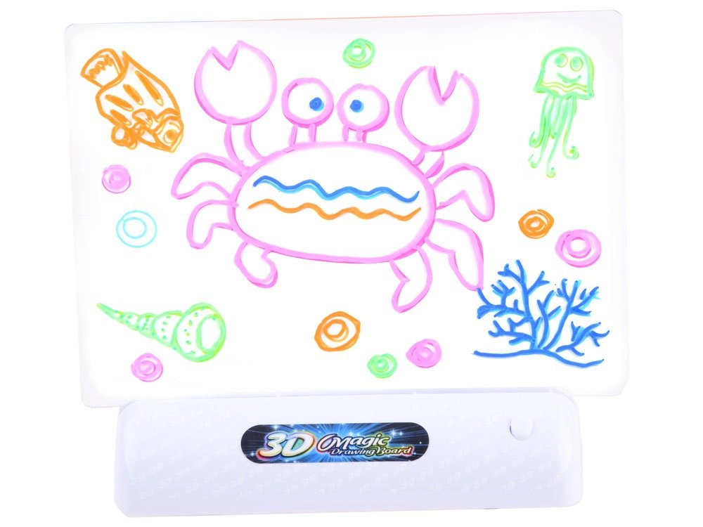 Varázslatos 3D rajztábla LED háttérvilágítással, amely a gyerekek alkotásait neonos, 3D hatású képekké változtatja. A fluoreszkáló filceknek, a 3D szemüvegnek és az újra és újra használható átlátszó lapnak köszönhetően remek választás a kreativitás, a fantázia és a finommotorika fejlesztéséhez 3 éves kortól.