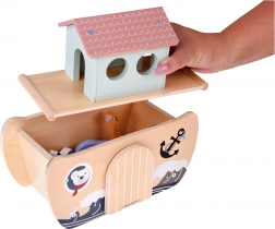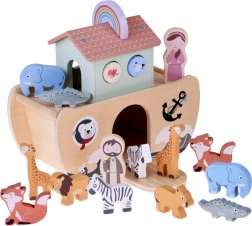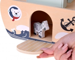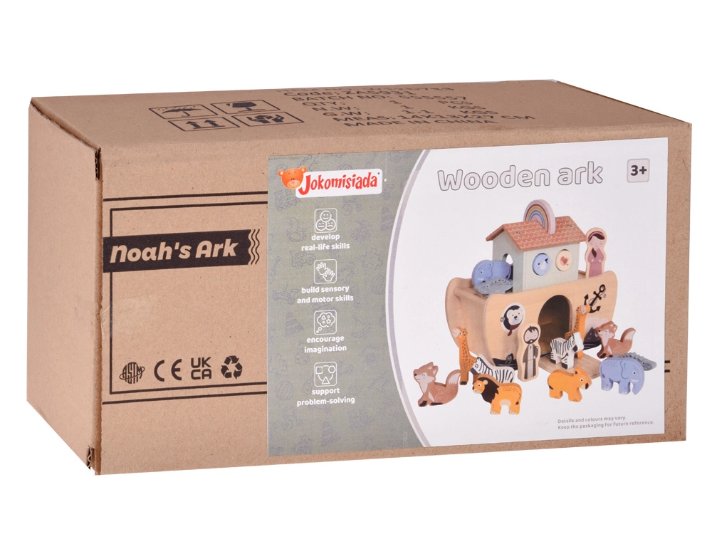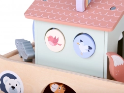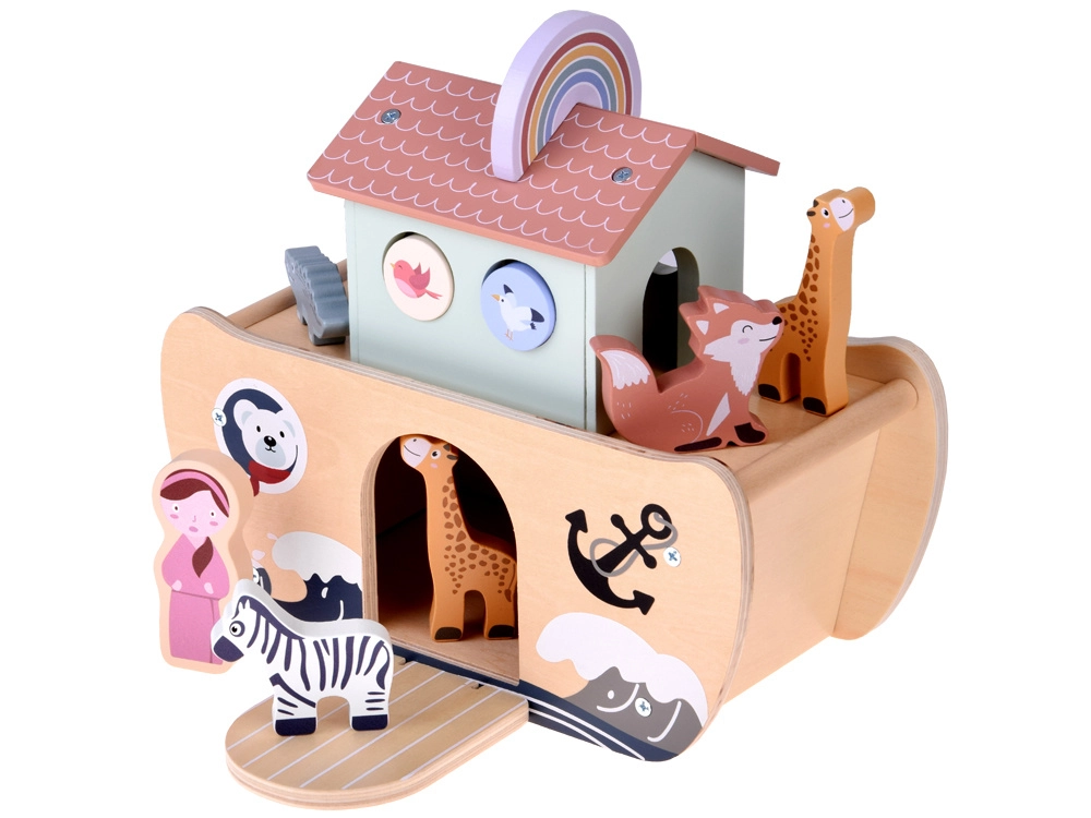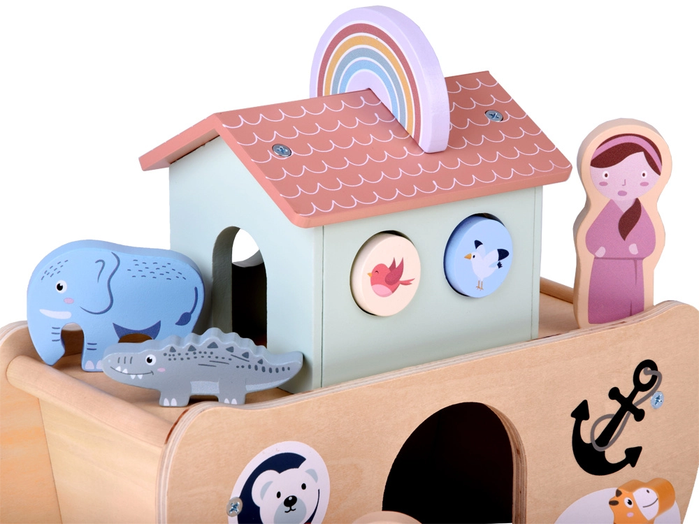 A bárka nyitható elemekkel, rámpával és nyílásokkal rendelkezik, amelyeken keresztül a gyerekek bedobják az állatkákat. Játékos módon gyakorolják a finommotorikát és a logikus gondolkodást.