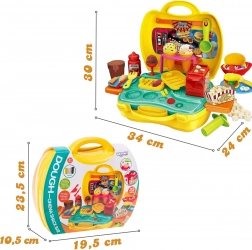 Ezzel a hordozható szettel a gyerekek pillanatok alatt felállíthatják saját snack bárjukat – csak nyisd ki a bőröndöt, és kezdődhet az alkotás. Az összes elem praktikus tárolásának köszönhetően a szett otthonra, nagyszülőkhöz és utazásokra is ideális. A színes és rugalmas gyurma könnyen formázható és kellemes tapintású.