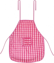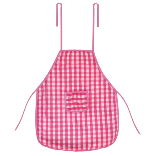 Könnyű, rózsaszín–fehér kockás minta nyak- és derékkötővel a kényelmes illeszkedésért. A praktikus zsebecske kéznél tartja a kis konyhai eszközöket.