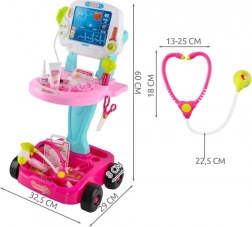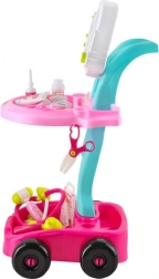 Könnyű, kétpolcos kocsi fogantyúval és kerekekkel, amely megkönnyíti az eszközök szállítását a „rendelőben”. Akasztók és betétek segítenek mindent áttekinthetően a helyén tartani.