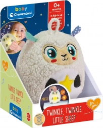 A CLEMENTONI BABY Twinkle Twinkle interaktív plüss bárányka a legkisebbek számára készült. Megnyugtató dallamokat és finom fényhatásokat kombinál, amelyek segítik a babát a lecsendesedésben, miközben ösztönzik a látást és a hallást. A kellemes tapintású plüss felület ölelgetésre hív, és támogatja az érzékelést.