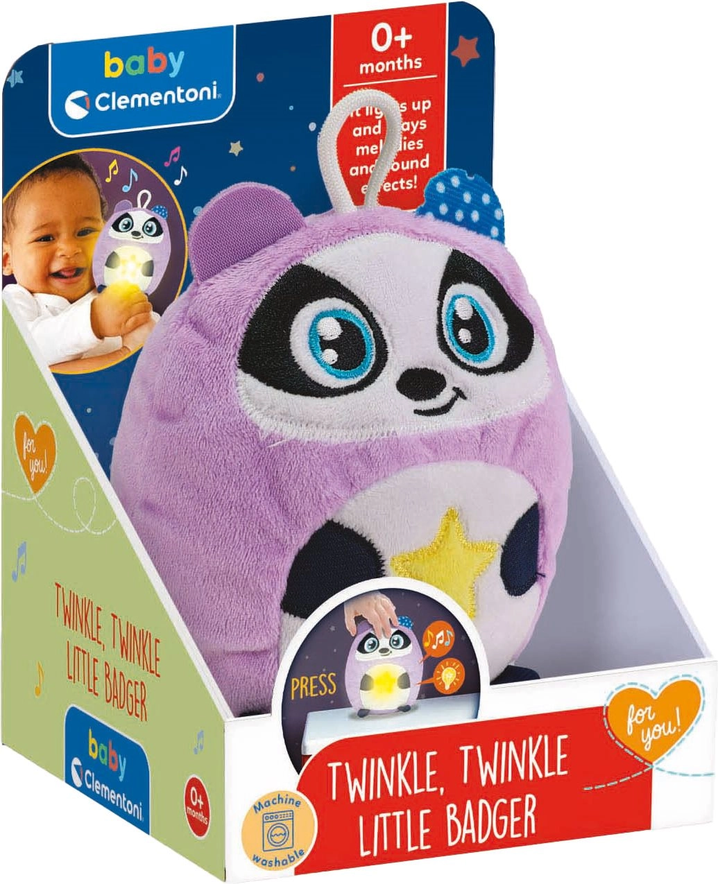 A bájos, interaktív plüss Clementoni Baby Twinkle Twinkle kis borz a legkisebbeknek készült. Finom fény- és hangeffekteket kínál megnyugtatáshoz és szórakozáshoz, puha, selymes kivitelével ideális ölelgetéshez, valamint támogatja az érzékelést és a finommotorikát. Újszülött kortól ajánlott, kiságyba és utazáshoz egyaránt ideális. Biztonságos, tanúsított anyagokból készült, és könnyen tisztítható.