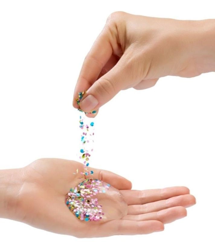 - Kreatív styling – keverj 4 féle csillámot az átlátszó slime-ba.