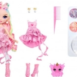 Fedezd fel a varázslatos játékot a Rainbow High Bella rózsaszín babával! A csomagban átlátszó slime és 4 féle csillám található, amelyeket keverhetsz, hogy egyedi effektusokat alkoss. Helyezd a slime-ot a baba átlátszó lábaiba, és figyeld a lenyűgöző átalakulást. A szettet stílusos öltözék, cipők, fülbevalók és egy varázslatos kisállat egészíti ki – végtelen kreatív öltöztetéshez és stylinghoz.