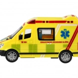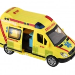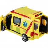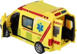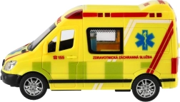 A 14,5 cm hosszú műanyag mentőautó minden kis mentőst megörvendeztet. A lendkerekes meghajtásnak köszönhetően elég meglökni, és magától előre indul. A valósághű fény- és hangeffektek, valamint a nyitható ajtók támogatják a kreatív játékot és a képzeletet. 3 éves kortól ajánlott.