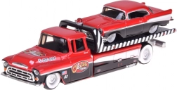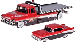 Stílusos gyűjtői szett 1:64 méretarányban, amely az autótörténelem klasszikusait egyesíti: a Chevrolet Flatbed 1957 vontatót és az ikonikus Chevrolet Bel Air 1957 modellt. Mindkét modellnek fém karosszériája, realista részletei vannak, és funkcionális szállítóplatóval érkezik az autentikus kiállításhoz és a szórakoztató játékhoz.