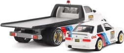 A vontató teherautó kihajtható rámpával és sík platóval rendelkezik, így az 1988-as BMW M3 könnyen felrakható és rögzíthető – ideális a valósághű játékhoz és kiállításhoz.
