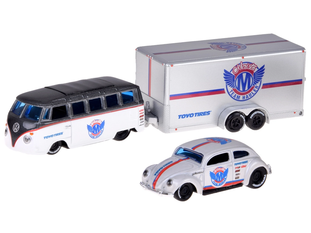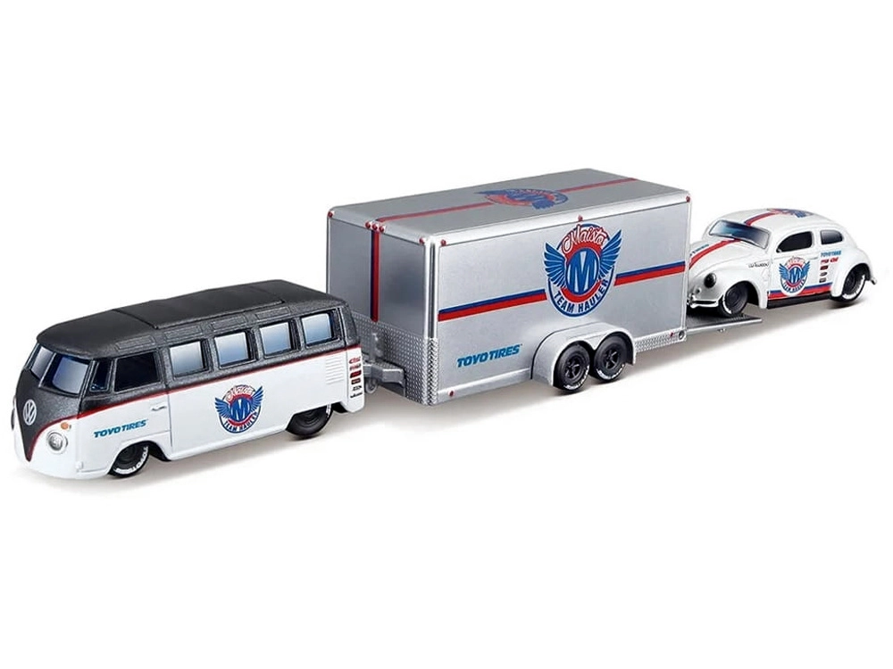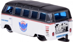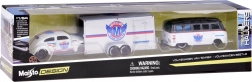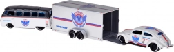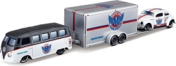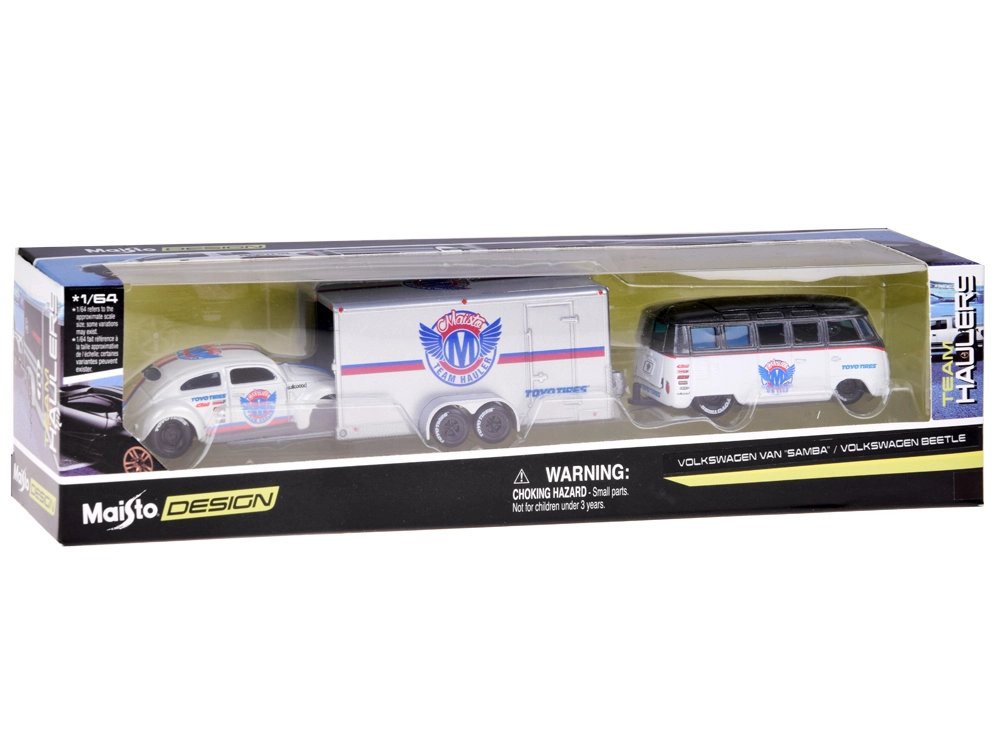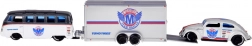 A Volkswagen Van Samba vonóhoroggal rendelkezik az utánfutó csatlakoztatásához; a horog igény szerint eltávolítható, az utánfutó lekapcsolható a horog kicsavarása nélkül is. A teljes készlet ideális a klasszikus autók rajongóinak, az 1:64 méretarány gyűjtőinek és a kreatív játékot kedvelő gyerekeknek.