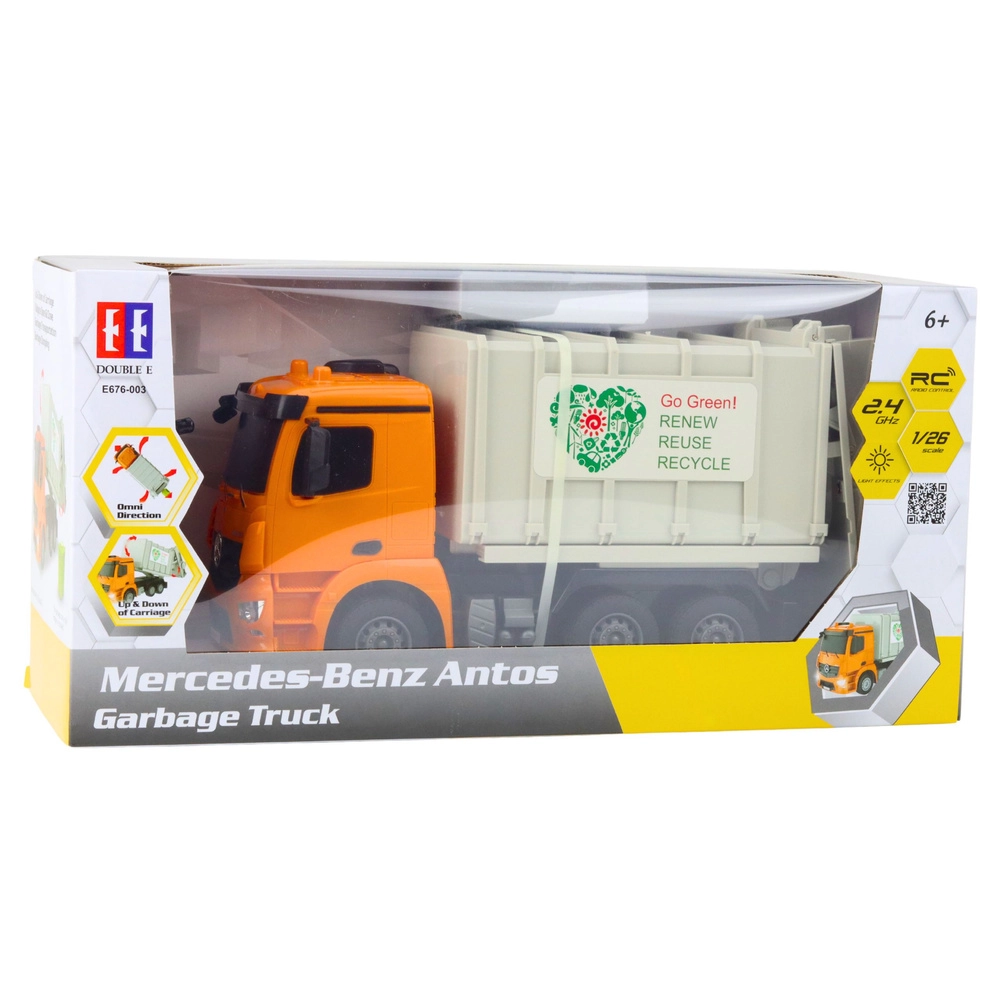 Licencelt MERCEDES-BENZ ANTOS RC szemetesautó 1:26 méretarányban valósághű vezetési élményt nyújt, működő kukaemeléssel és konténerbillentéssel. A 2,4 GHz-es irányításnak köszönhetően a vezérlés egyenletes és zavarásmentes, a masszív ABS felépítés pedig tartós. Remek játék 6 éves kortól, amely támogatja a kreatív játékot és az újrahasznosítás tanulását.