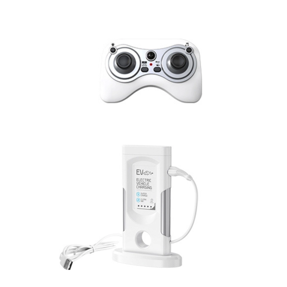 A csomag része egy USB kábel töltőállomás formában, valamint egy praktikus távirányító két joystickkal az intuitív irányításhoz.