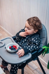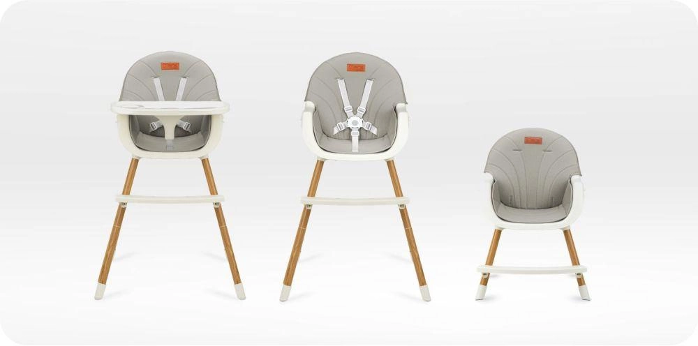 A MoMi REKI sokoldalú gyermek etetőszék, amely minden növekedési szakaszhoz alkalmazkodik. A 3 használati módnak köszönhetően könnyen válthat a tálcás etetésről a kényelmes, közös asztali ülésre, majd később az alacsony székre játékhoz és alkotáshoz. Minimalista dizájnja és visszafogott színei bármely enteriőrbe illenek.