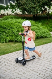 A szülők értékelni fogják az egy gombos, gyors összecsukást a könnyű tárolás és szállítás érdekében. A LED kerekek menet közben világítanak, így szórakoztatóbb és láthatóbb a közlekedés. A 3 fokozatú kormánymagasság révén a roller a gyerekkel együtt nő, és több szezonon át használható.