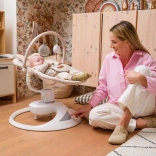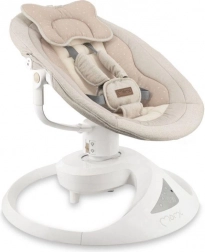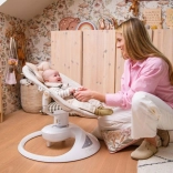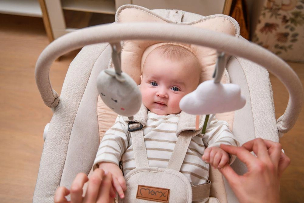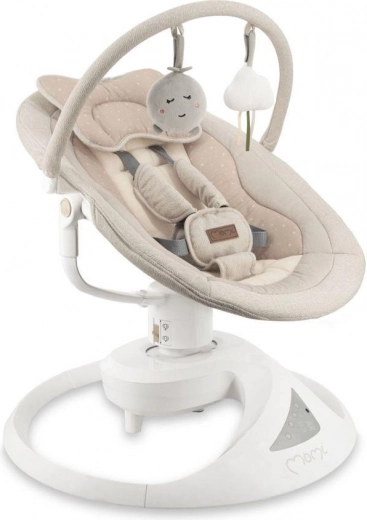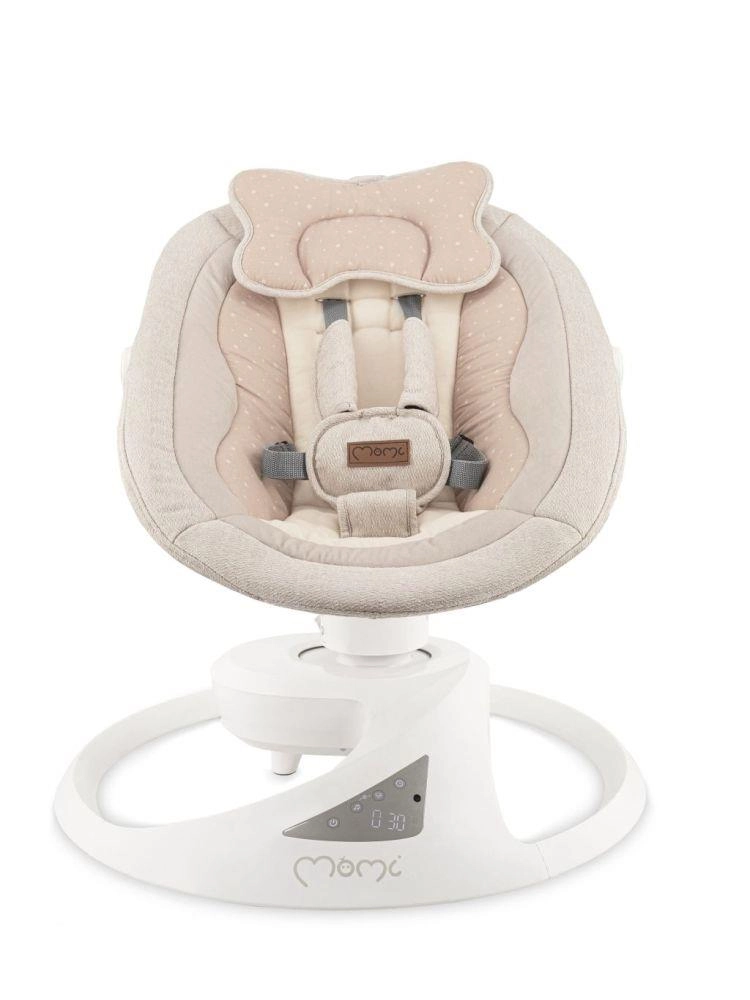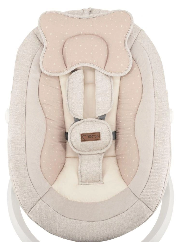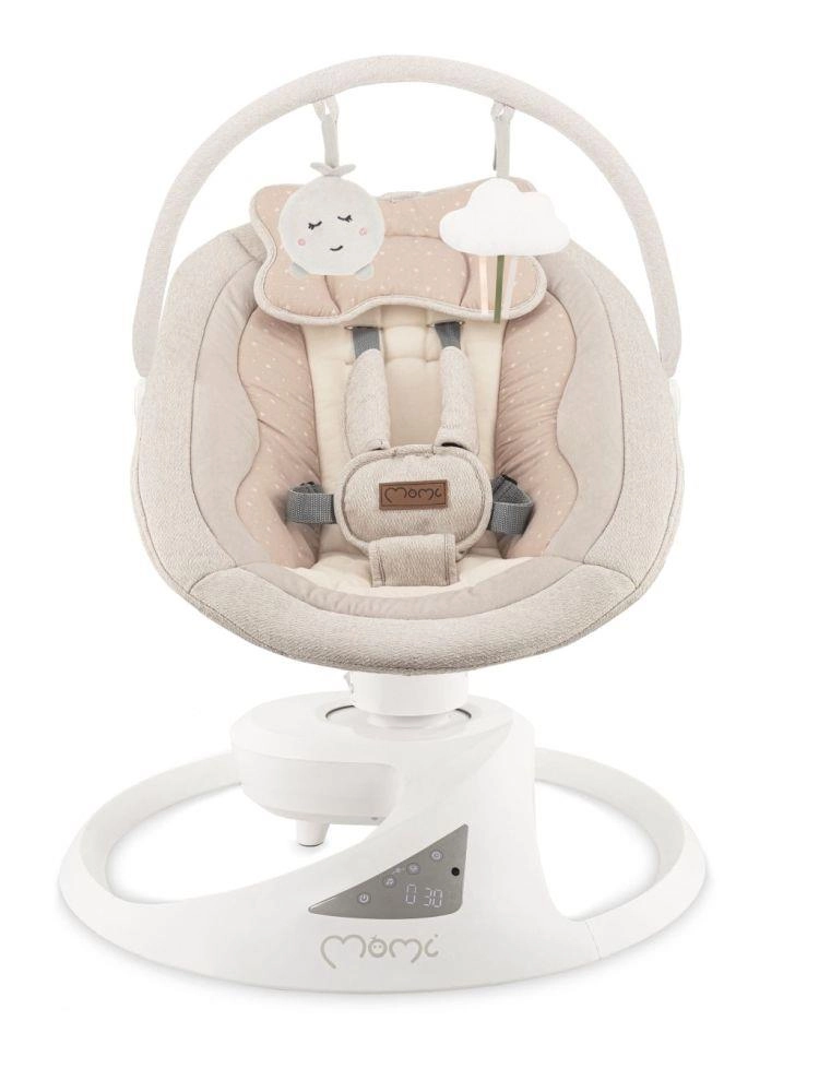 A prémium MoMi PEARL elektromos hintaszék 2 hintázási módot kínál (oldalirányú és finom forgó mozgás), 360°-ban forgatható ülést, 5 sebességet, időzítőt és Bluetooth-ot zenelejátszáshoz. Kényelmes, biztonságos és stílusos megoldás a baba megnyugtatására és szórakoztatására újszülött kortól 9 kg-ig.