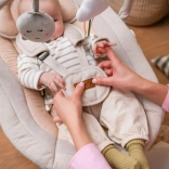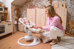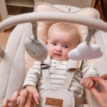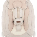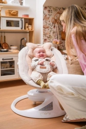 A MoMi PEARL hintaszék modern segítség a szülőknek, amely egyesíti a megnyugtató mozgást, a zenét és a kényelmet. A két hintázási módnak és a 360°-ban forgatható ülésnek köszönhetően könnyen a baba igényeihez igazítható a pozíció és a hintázás intenzitása. A puha párnázás, az 5 pontos biztonsági öv és az állítható háttámla mindennapos használat mellett is biztonságot és kényelmet nyújt.