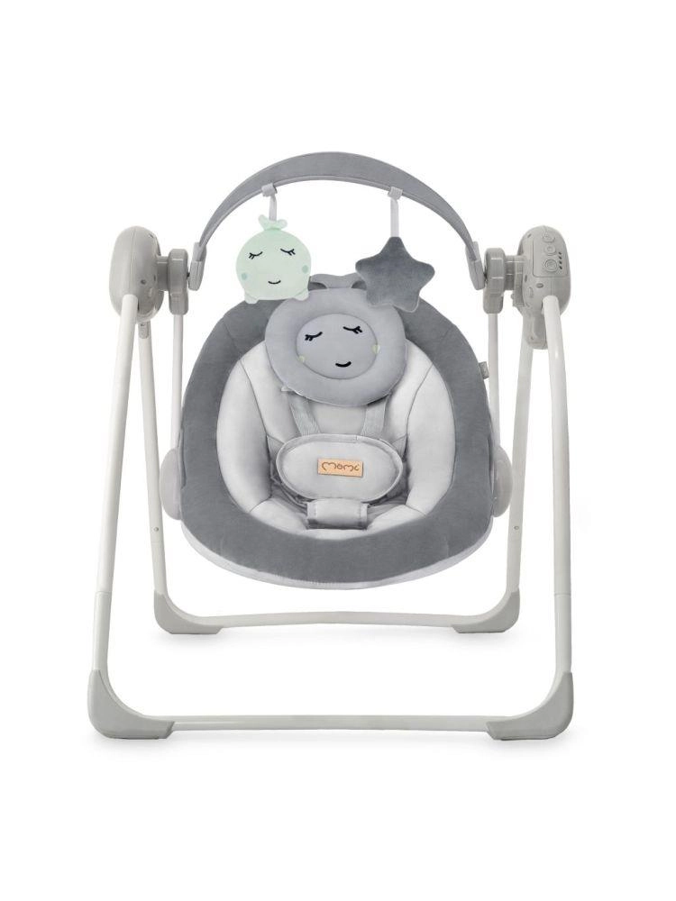 Elektronikus ringató fekvőszék MOMI Liss elegáns szürke színben, amely 5 ringatási sebességgel, időzítővel és 6 dallammal nyugtatja és szórakoztatja a babát. Stabil, összecsukható vázzal, puha ülőrésszel és párnával, valamint 5 pontos biztonsági övvel a biztonságos és kényelmes használatért otthon és útközben.