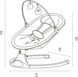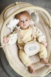 Az öt pontos övek, a puha párnácska és a csúszásgátló tappancsok biztonságban és kényelemben tartják a babát. A két játékkal ellátott játékhíd támogatja az érzékszervi fejlődést.