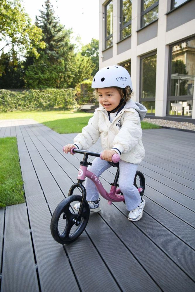 A MoMi Isoka modern egyensúlyozó kerékpár az első gurulásokhoz. A könnyű és tartós acél váz, a csúszásmentes markolatok és az alacsony átlépés révén a gyerekek magabiztosan érzik magukat, és gyorsan elsajátítják a helyes szokásokat az áttéréshez a hagyományos kerékpárra. A kerekek LED fényei dinamó elven működnek, így nem igényelnek elemet – menet közben felvillannak, növelve a mókát és a biztonságot.