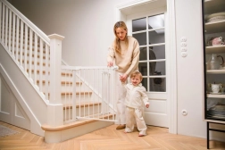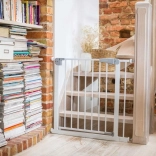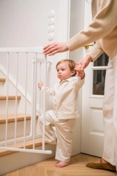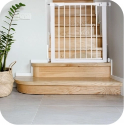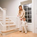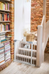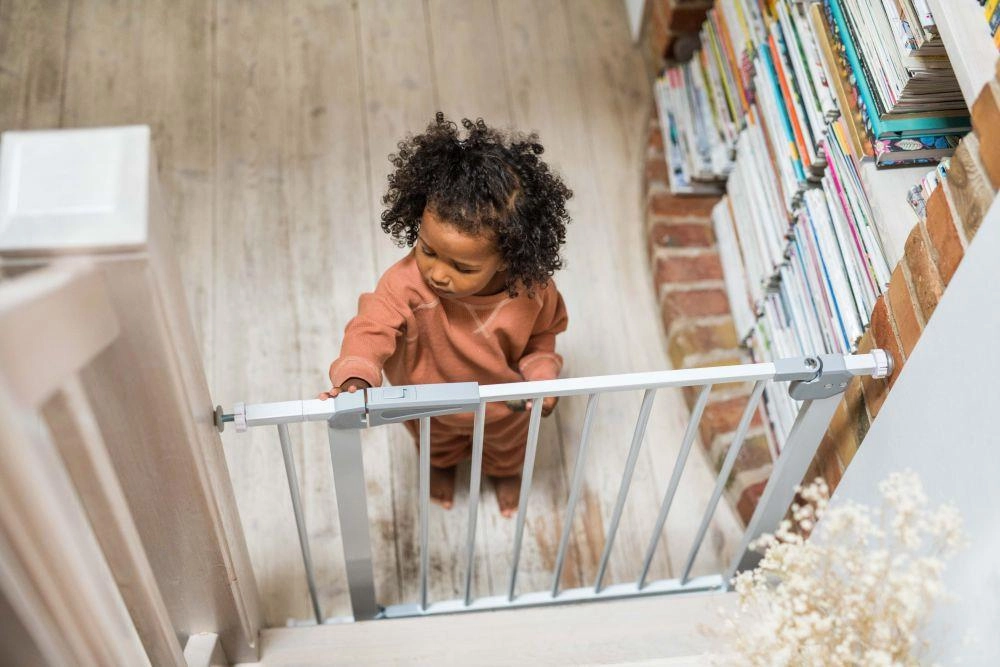 A dupla biztonsági mechanizmus megakadályozza, hogy a gyerekek kinyissák. A kapu két irányba nyílik, és 90°-nál nyitva marad a zavartalan áthaladásért.