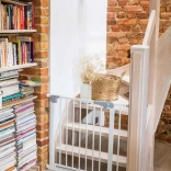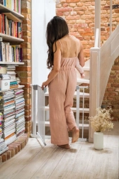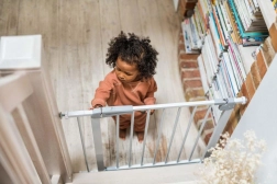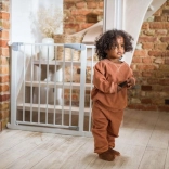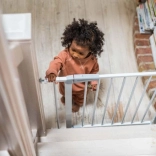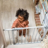 A MoMi PAXI Plus megbízható, fém biztonsági kapu, amelyet veszélyes zónák, például lépcsők és konyhák biztonságos elválasztására terveztek. A nyomórögzítésnek köszönhetően gyorsan felszerelhető anélkül, hogy az ajtófélfát vagy a falakat megsértené. A masszív szerkezet sima, éles szélektől mentes felülettel biztosítja a biztonságot és a mindennapi kényelmes használatot.
