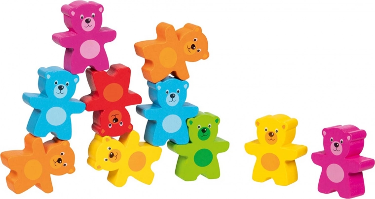 Szórakoztató és fejlesztő egyensúlyozó játék mackókkal a GOKI márkától, amely fejleszti a finommotorikát, a türelmet és az ügyességet. A tömör fából készült, színes mackókat egyedi piramisokká lehet egymásra rakni. Játssz egyedül vagy barátokkal, és élvezd a egyensúlyt, taktikát és a szórakozást.